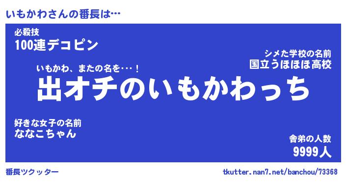 | ファンタジー風あだ名 | 『イモフェル』『エターナルイモカワー』 |