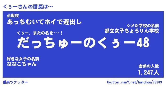 | ヒーロー風カッコイイあだ名 | 『スーパークゥー』『ウルトラくぅーマン』 |