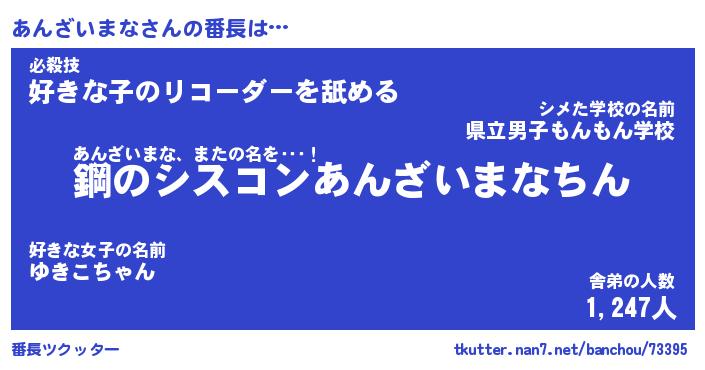 | 肩書あだ名 | 『あんざいまな社長』『あんざいまな団長』 |