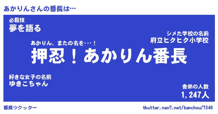 | ヒーロー風カッコイイあだ名 | 『スーパーアカリン』『銀牙騎士アカ』 |