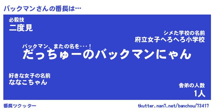| 男性向けラノベタイトル風あだ名 | 『バックマンの憂鬱』 |