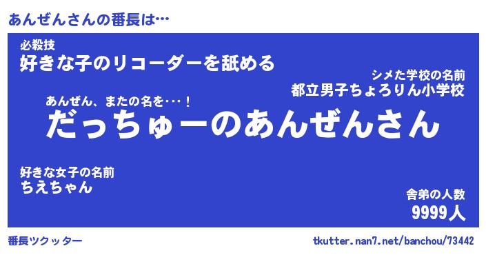 | 意味不明あだ名 | 『ペロリンあんぜん』『永久保存あんぜん』 |