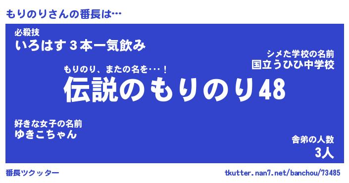 | ヒーロー風カッコイイあだ名 | 『スーパーモリノリ』『魔戒騎士モリ』 |