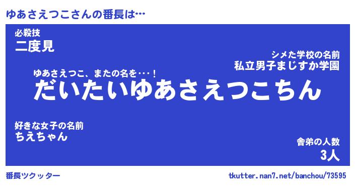 | 肩書あだ名 | 『ゆあさえつこCEO』『ゆあさえつこ副担任』 |