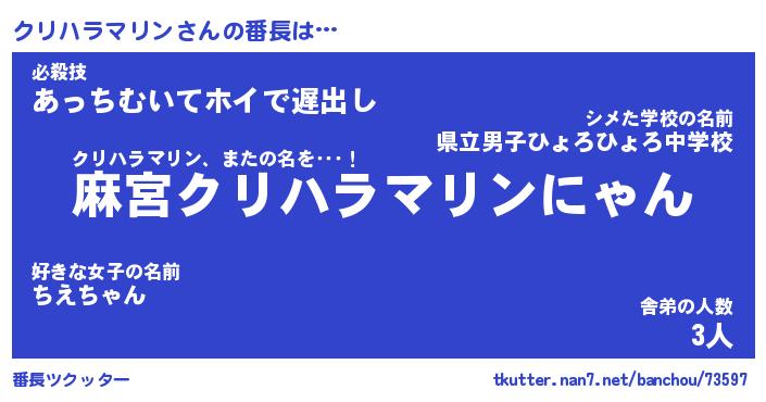 | ヒーロー風カッコイイあだ名 | 『スーパークリハラマリン』 |