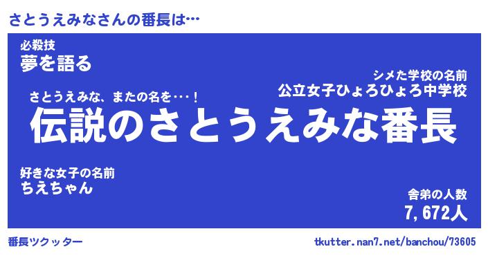 | 伝説のあだ名 | 『伝説のスナイパーさとうえみな』 |