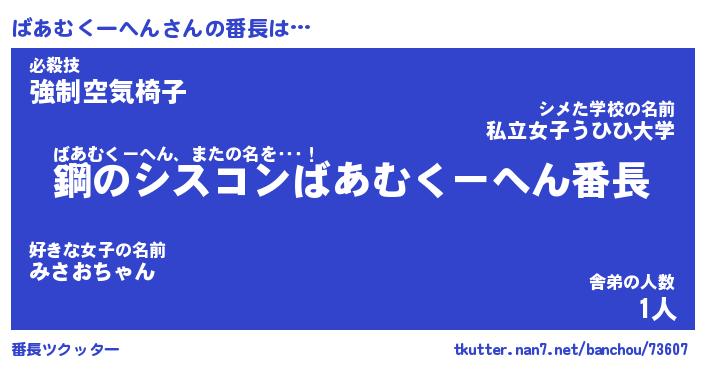 | ヘコむあだ名 | 『ばあふぇ~』『牛乳』『ばあっ子』 |