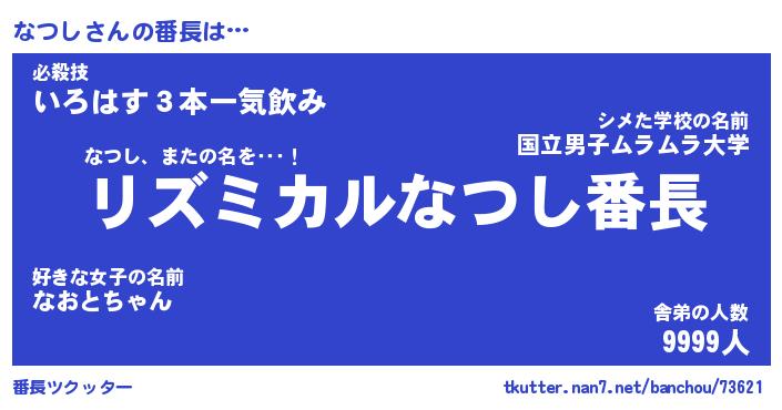 | 男性向けラノベタイトル風あだ名 | 『なつしの憂鬱』 |