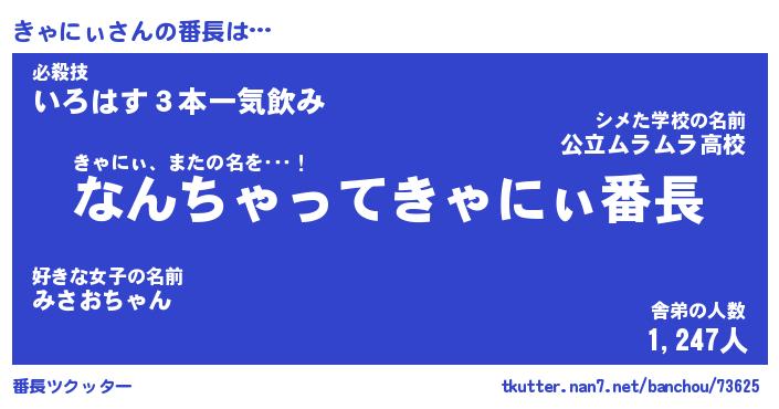 | 意味不明あだ名 | 『ペロリンきゃにぃ』『永久保存きゃにぃ』 |