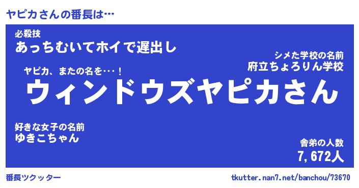 | ピコ太郎風あだ名 | 『ヤコ六郎』『ピヤ十郎』『ヤピ史郎』 |