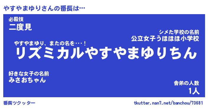 | 2回繰り返すあだ名 | 『やすやす』『ややすす』『いじいじ』 |