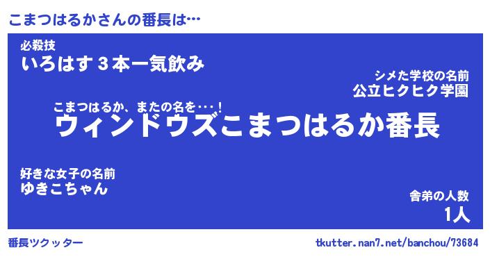 | 肩書あだ名 | 『こまつはるか店長』『こまつはるか班長』 |