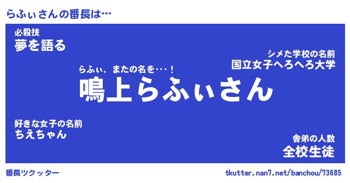 | 肩書あだ名 | 『らふぃ御曹司』『らふぃ大統領』 |