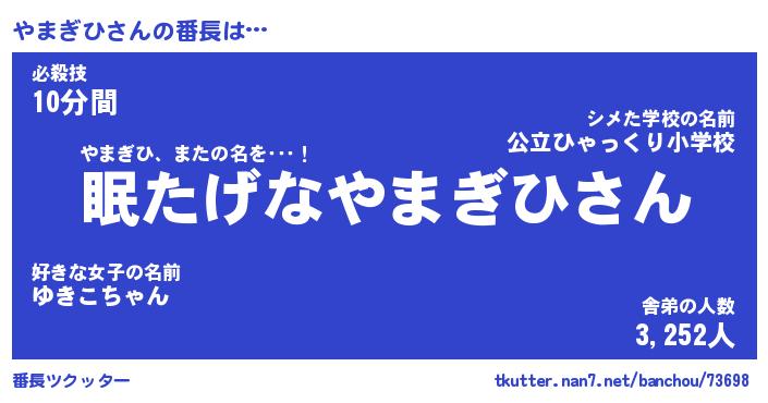| 2回繰り返すあだ名 | 『やまやま』『ややまま』『ぬめぬめ』 |