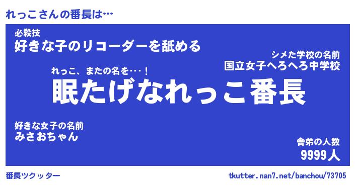 | ヒーロー風カッコイイあだ名 | 『スーパーレッコ』『ウルトラれっこマン』 |