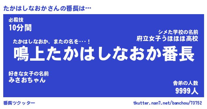| 男性向けラノベタイトル風あだ名 | 『タカハシナオカアートオンライン』 |
