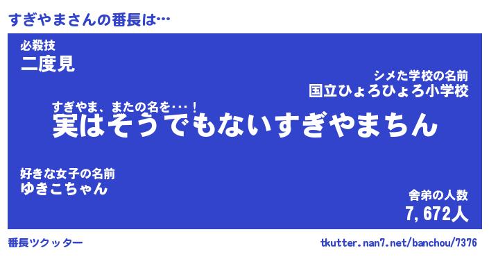 | ピコ太郎風あだ名 | 『スコ八郎』『ピス史郎』『スギ五郎』 |