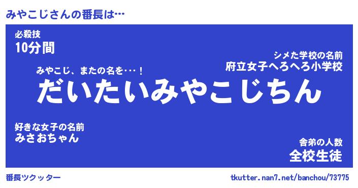 | ファンタジー風あだ名 | 『ミヤフェル』『エターナルミヤコジー』 |