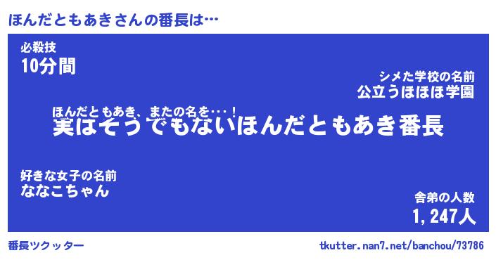 | 恥ずかしいあだ名 | 『プリティーほんだともあき』『ほんちん』 |