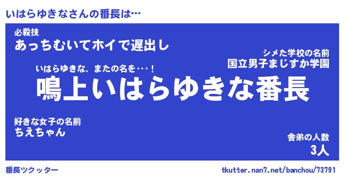 | 伝説のあだ名 | 『封印されしスナイパーいはらゆきな』 |