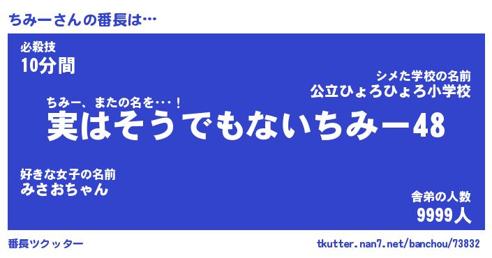 | 肩書あだ名 | 『ちみー社長』『ちみー総理大臣』 |