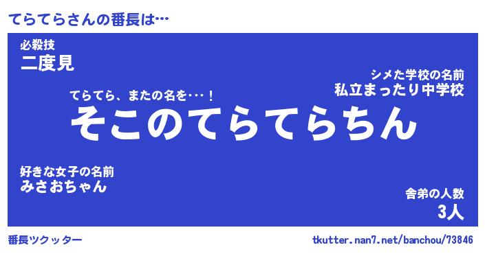 | 肩書あだ名 | 『てらてら御曹司』『てらてら国家主席』 |