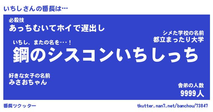 | ヒーロー風カッコイイあだ名 | 『スーパーイチシ』『ウルトラいちしマン』 |