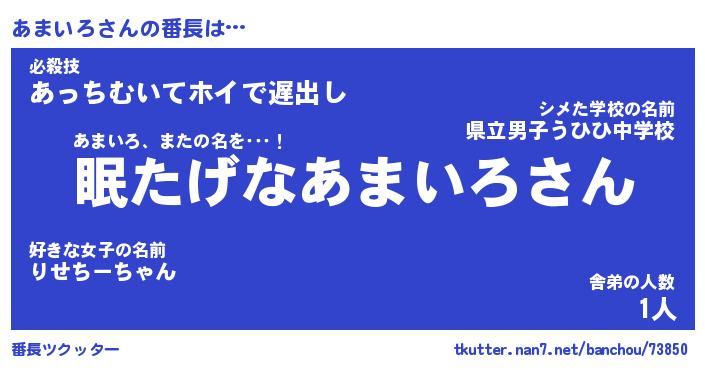 | 意味不明あだ名 | 『ペロリンあまいろ』『永久保存あまいろ』 |