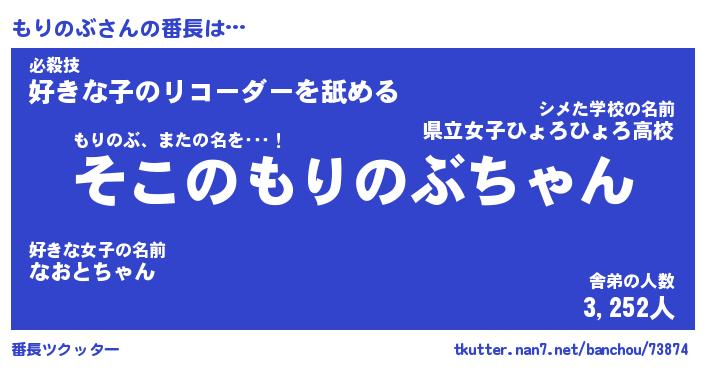 | 肩書あだ名 | 『もりのぶ店長』『もりのぶ国家主席』 |