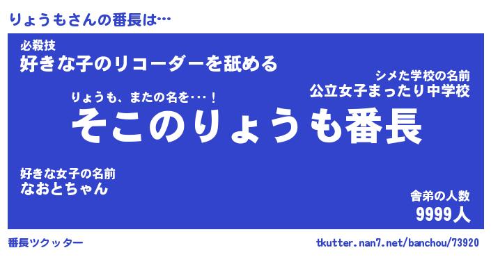 | ヘコむあだ名 | 『りょにゅー』『酢こんぶ』『りょを』 |