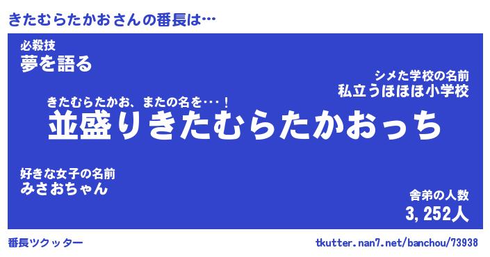 | 肩書あだ名 | 『きたむらたかお店長』 |