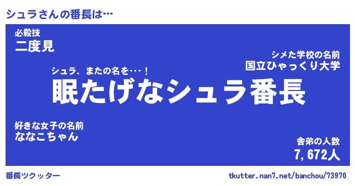 | ヒーロー風カッコイイあだ名 | 『スーパーシュラ』『ウルトラシュラマン』 |