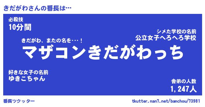 | 意味不明あだ名 | 『ペロリンきだがわ』『永久保存きだがわ』 |