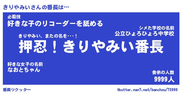 | ヒーロー風カッコイイあだ名 | 『スーパーキリヤミイ』『天弓騎士キリ』 |