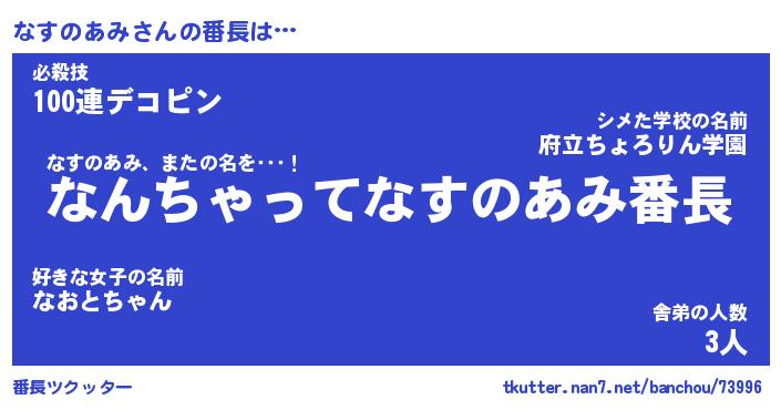 | ヒーロー風カッコイイあだ名 | 『スーパーナスノアミ』『魔戒騎士ナス』 |