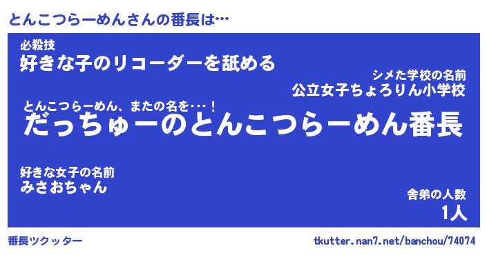 | ヘコむあだ名 | 『とんもー』『なまこ酢』『とんっ子』 |