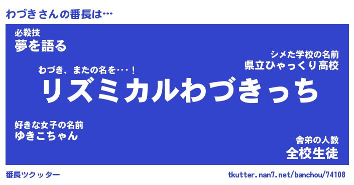 | ポケモン風あだ名 | 『ワヅチュウ』『ワヅキダネ』 |