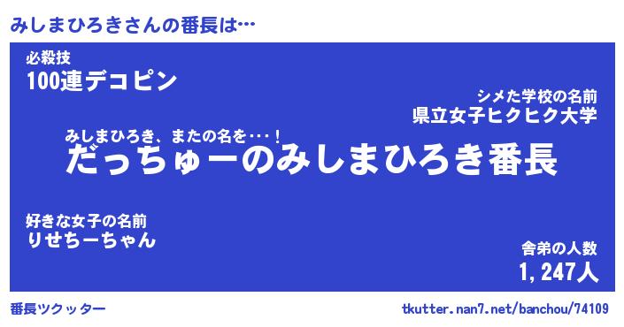 | 恥ずかしいあだ名 | 『プリティーみしまひろき』『みしっちょ』 |