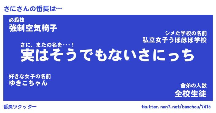 | ヒーロー風カッコイイあだ名 | 『スーパーサニ』『ウルトラさにマン』 |