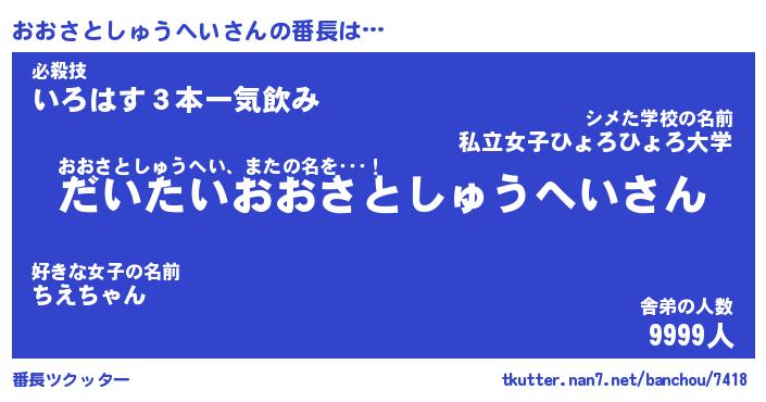 | 欧米人風あだ名 | 『マイケルおおさとしゅうへい』 |