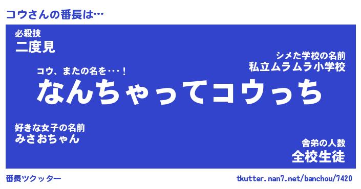 | ヒーロー風カッコイイあだ名 | 『スーパーコウ』『ウルトラコウマン』 |