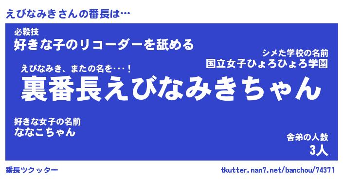 | 肩書あだ名 | 『えびなみきCEO』『えびなみき国家主席』 |
