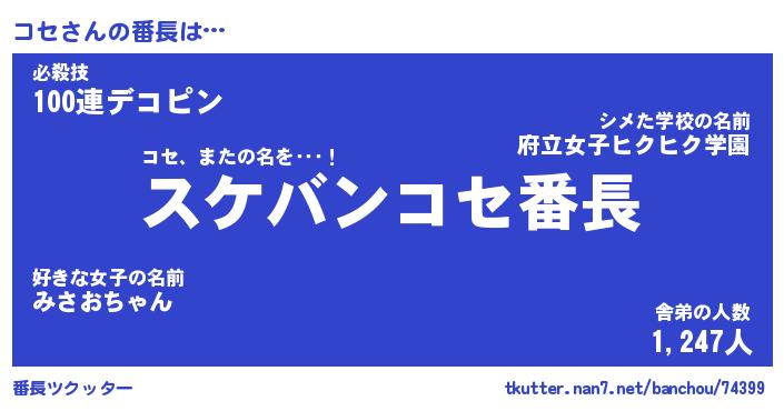 | ピコ太郎風あだ名 | 『ココ八郎』『ピコ史郎』『コセ六郎』 |