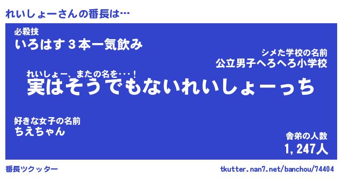 | 伝説のあだ名 | 『封印されしスナイパーれいしょー』 |