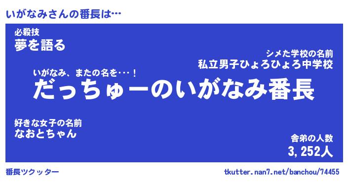 | ヘコむあだ名 | 『いがにゅー』『豆乳』『いが太郎』 |