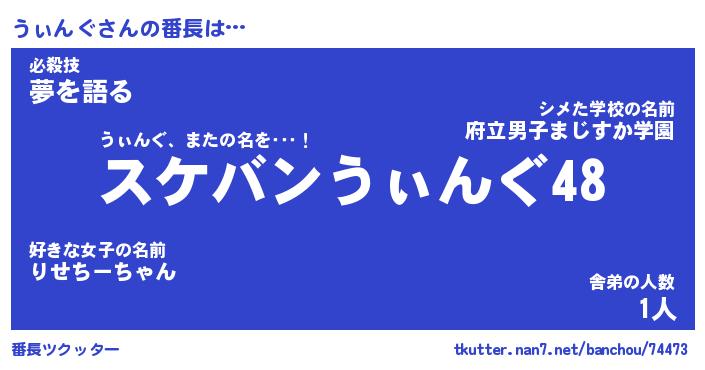 | 肩書あだ名 | 『うぃんぐ店長』『うぃんぐ大統領』 |