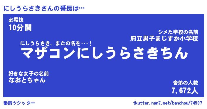 | ヒーロー風カッコイイあだ名 | 『スーパーニシウラサキ』『魔戒騎士ニシ』 |