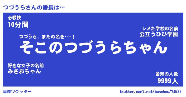 | ヒーロー風カッコイイあだ名 | 『スーパーツヅウラ』『天弓騎士ツヅ』 |