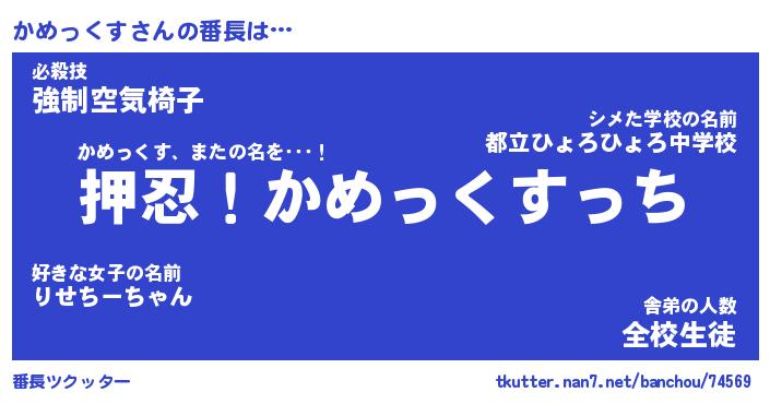 | ピコ太郎風あだ名 | 『カコ四郎』『ピカ太郎』『カメ六郎』 |