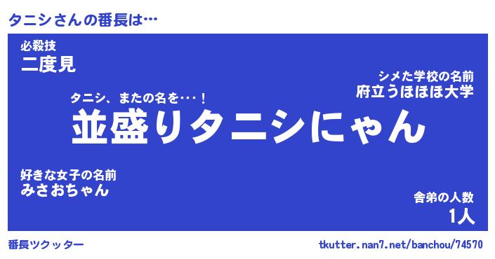 | ファンタジー風あだ名 | 『タニフェル』『エターナルタニシー』 |